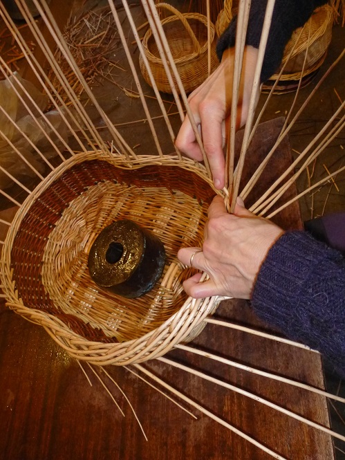 vannerie fine : paniers pleins, paniers à jour, en mélangeant parfois