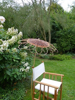 expose et vend sa vannerie directement à l'atelier ou dans son jardin (les plantes étant sa deuxième passion).